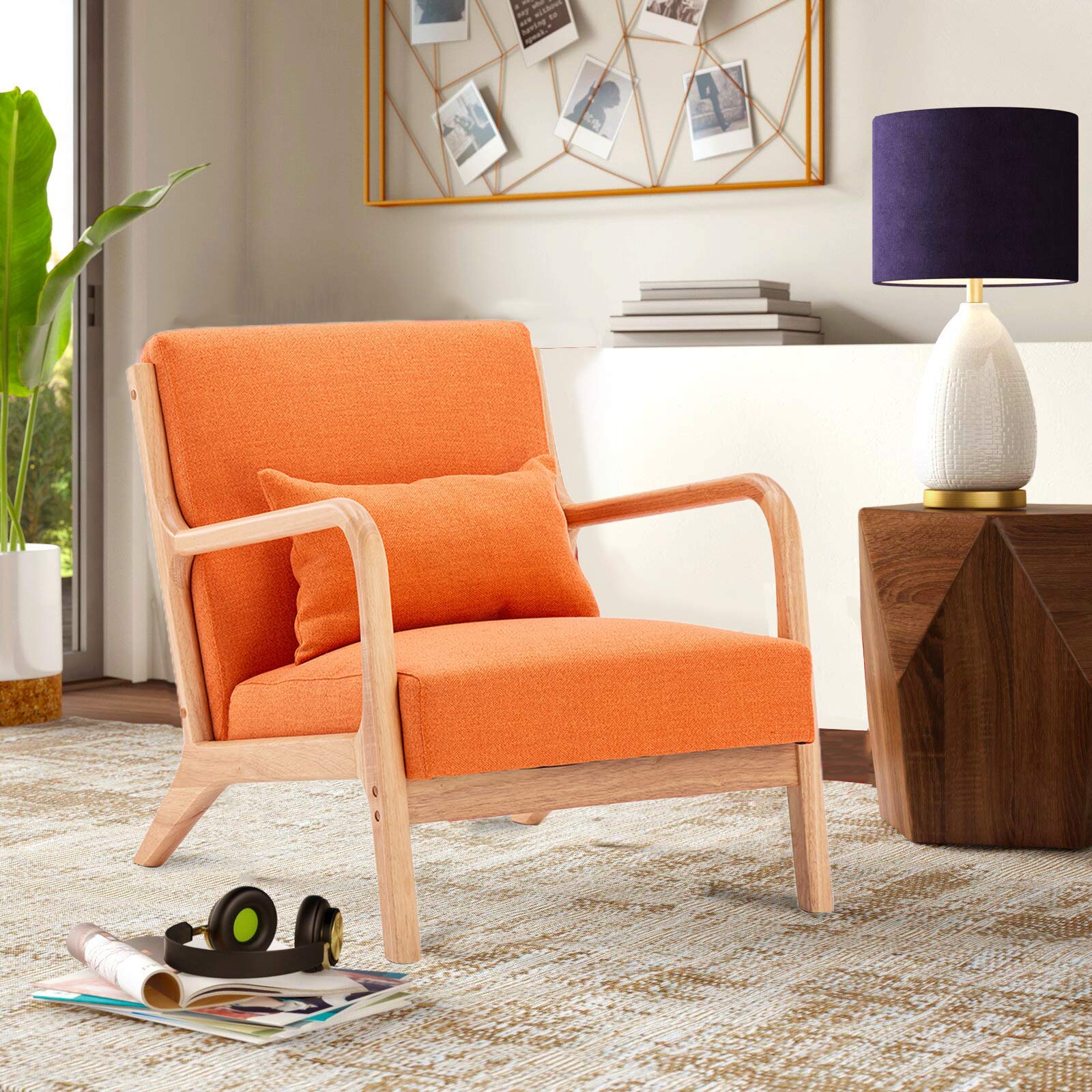 Amazon Com Joybase Lounge Arm Chair Mid Century Modern Accent Chair Wood Frame Armchair For Living Room Bedroom Orange Home Kitchen